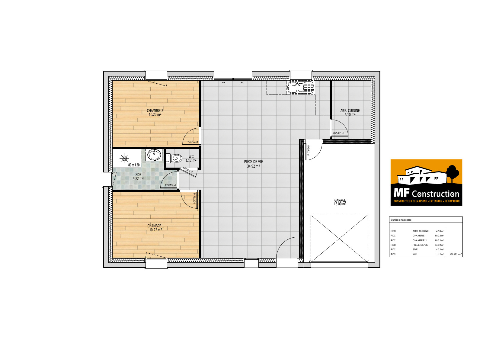 Accueil » Maisons "Essentiel" » Maison Plain-pied 2 chambres 65 m²+ garage